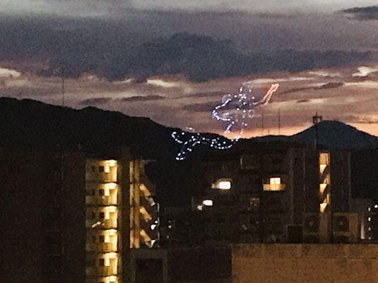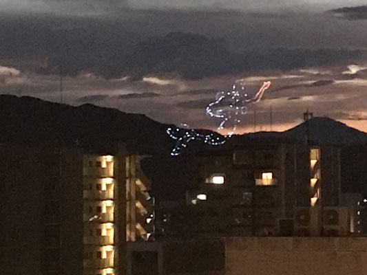 ドローン花火は丁度、障害物も無くよく観れて義理の母も喜んでいた!